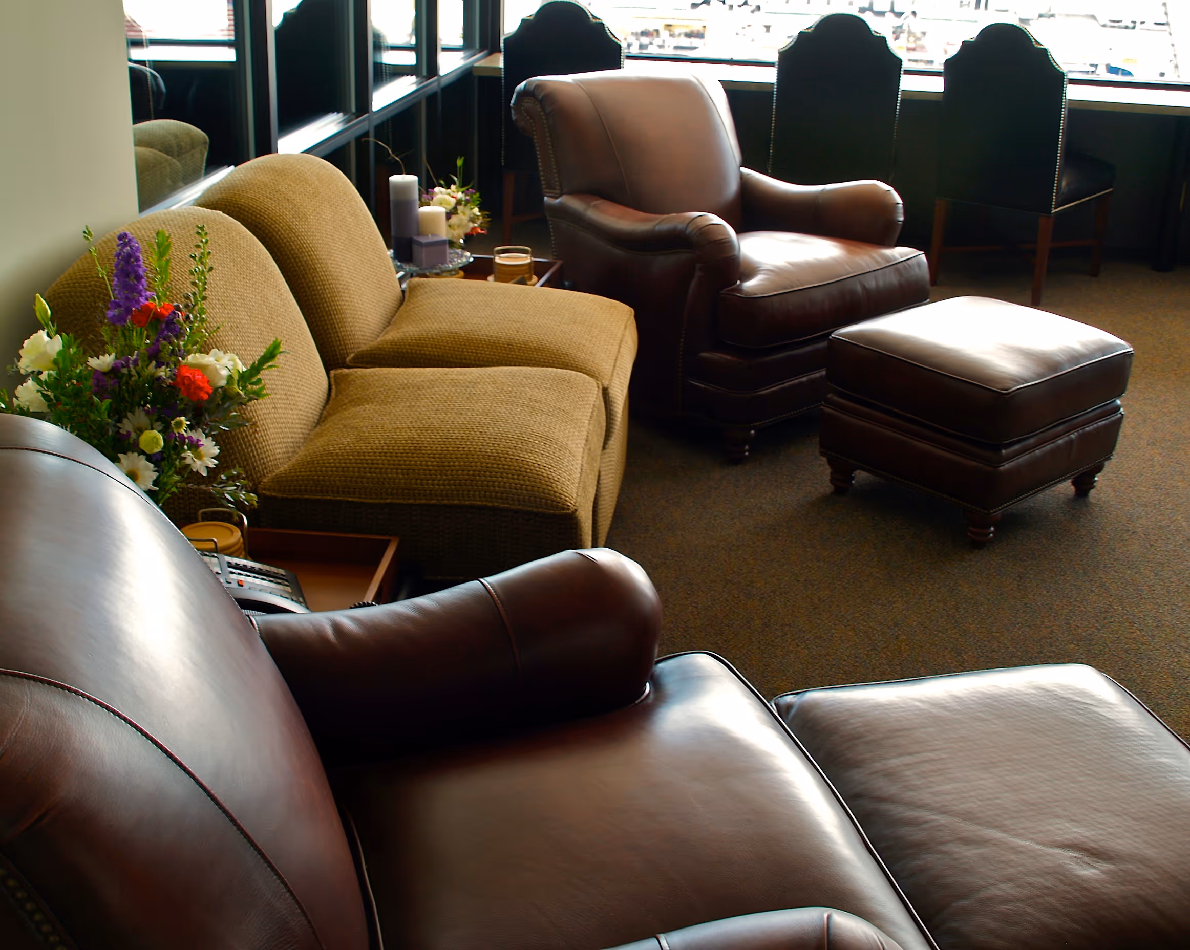 Bar top tables and plush seating